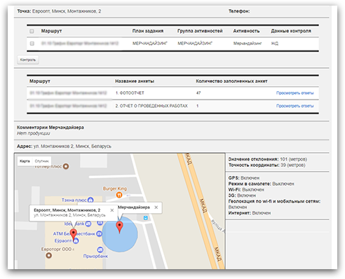 Наше программное обеспечение позволяет видеть отчетность в онлайн режиме, контролировать геолокацию мерчандайзеров, своевременно ставить задачи, оперативно реагировать на ситуации.